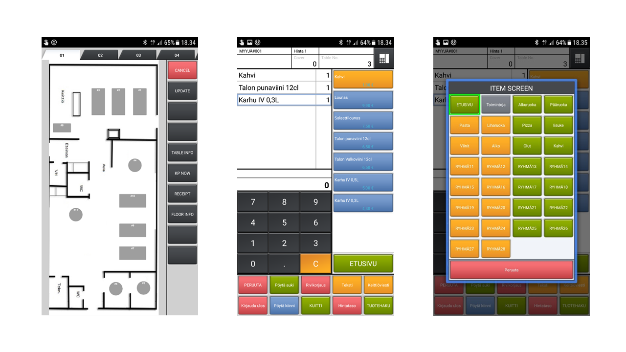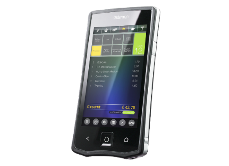Erillinen kannettava android pääte mahdollistaa tilausten teon pöydästä ja niiden välittämisen esimerkiksi keittiöön tai suoraan pöytämyyntiin kassalla.